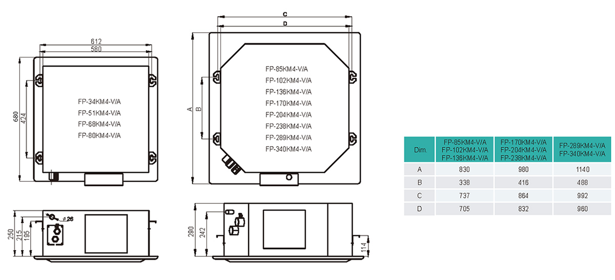 Coil are made of copper tubes and high exchange surface area aluminum blue fins. All coils are 100% tested against leaks by 16bar,1.6Mpa air pressure. with 3/4”pipe connections and air bleed vent.
